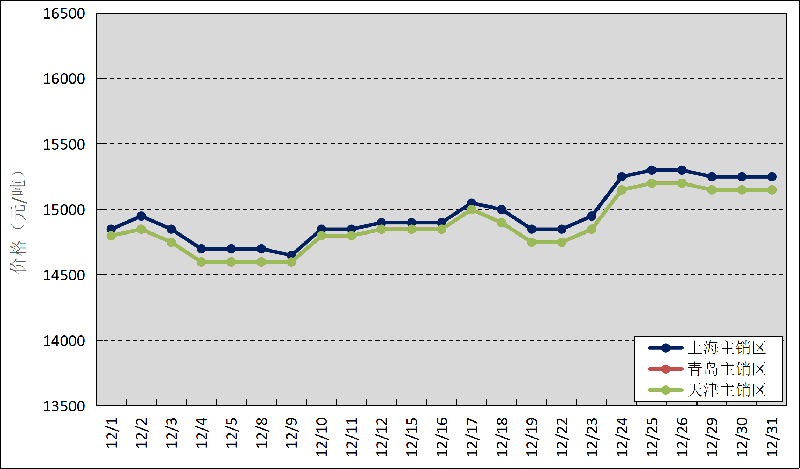 圖3 2025年12月國內(nèi)主銷區(qū)天然橡膠價(jià)格走勢