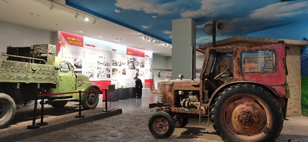 第五師“紅星耀雙河”陳列館位于第五師雙河市,2021年10月建成,展廳面積3100平方米,共6個廳:分為1個序廳,“西來異境、世外靈壤”“凱歌進(jìn)疆、屯墾戍邊”“時代召喚、再創(chuàng)輝煌”3個主展廳和“天國之享——南朝畫像磚藝術(shù)展”、“歲月失語、惟石能言——石文化”“漢畫像石拓片”3個臨時展廳,包含干打壘營房、石文化(巖畫)等5個現(xiàn)場教學(xué)點(diǎn)(參觀點(diǎn)),展出軍墾文物1000件、雕塑3個、圖片760多張。