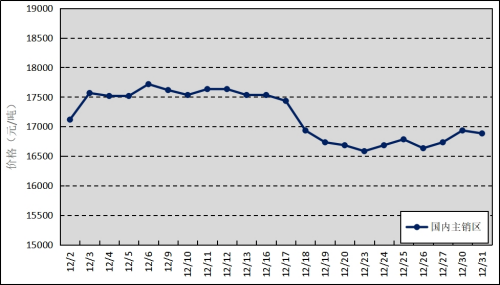 國內(nèi)主銷區(qū):12月,上海、青島和天津等銷區(qū)市場的國產(chǎn)全乳標(biāo)準膠平均價格為17179元/噸,環(huán)比上漲287元/噸,最高價為17717元/噸,最低價為16583元/噸。