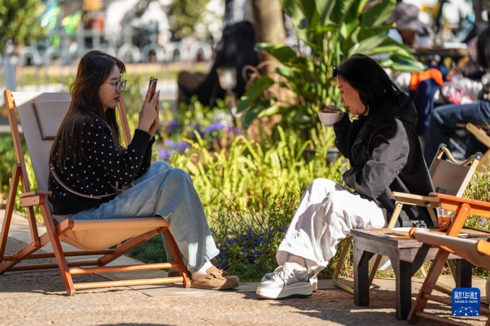2月21日,游客在翠湖咖啡文化中心休閑。新華社記者 彭奕凱 攝