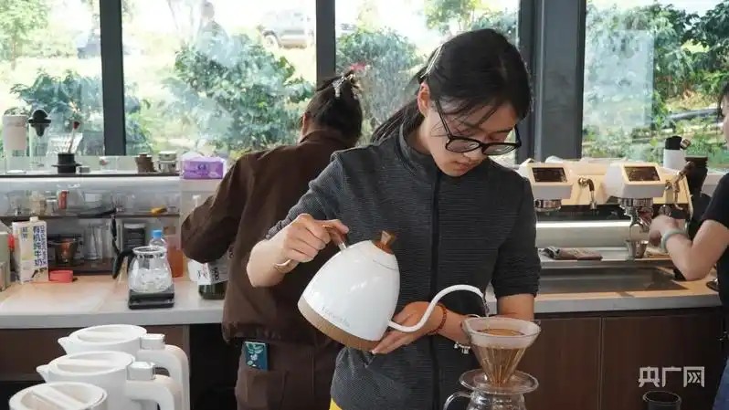 “村內(nèi)”就業(yè)的咖啡師正在沖泡咖啡(央廣網(wǎng)記者 魏文青 攝)
