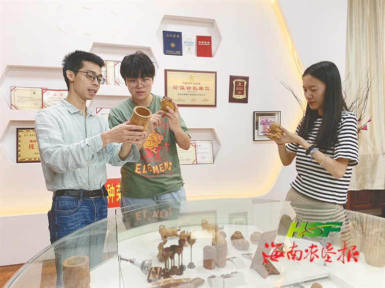 消費(fèi)者正在選購(gòu)海墾寶橡林產(chǎn)集團(tuán)出產(chǎn)的木制工藝品。袁宇君 攝
