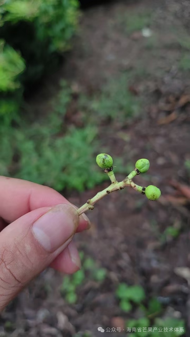 流行臺(tái)風(fēng)雨后,植株受傷,樹(shù)勢(shì)降低,且連續(xù)雨水天氣,空氣潮濕,容易誘發(fā)芒果細(xì)菌性角斑病、炭疽病、流膠病等病害流行發(fā)生。當(dāng)前三亞、樂(lè)東等部分果園出于揚(yáng)花期和小果期,尤其要注重預(yù)防芒果細(xì)菌性角斑病細(xì)菌病害,和芒果炭疽病、枝枯病、流膠病等真菌性病害的流行。受損樹(shù)應(yīng)該在晴天上午10點(diǎn)以前或者下午4點(diǎn)以后,噴1%石灰等量式波爾多液或者代森錳鋅等殺菌劑,預(yù)防病害的發(fā)生。還可選用戊唑醇、肟菌·戊唑醇、唑醚·氟環(huán)唑、氟菌·戊唑醇、苯甲·丙環(huán)唑、苯醚甲環(huán)唑、代森錳鋅、吡唑醚菌酯、三唑酮等藥劑預(yù)防真菌性病害;可選用波爾多液、石硫合劑、春雷·王銅、噻菌銅、春雷霉素、氫氧化銅、中生菌素等藥劑預(yù)防細(xì)菌性黑斑病。