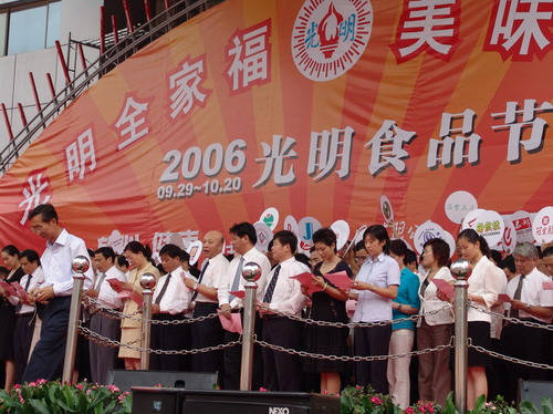(光明集團副總裁葛俊杰帶領各品牌作安全質量承諾)