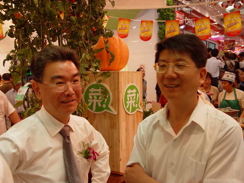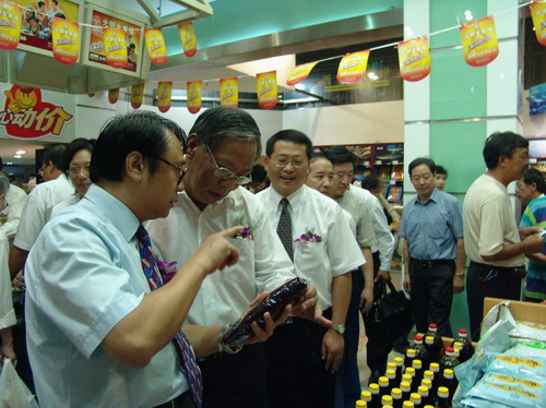 (光明集團總裁曹樹民和光明集團董事、上海煙糖集團公司董事長吳順寶參觀光明食品節(jié))