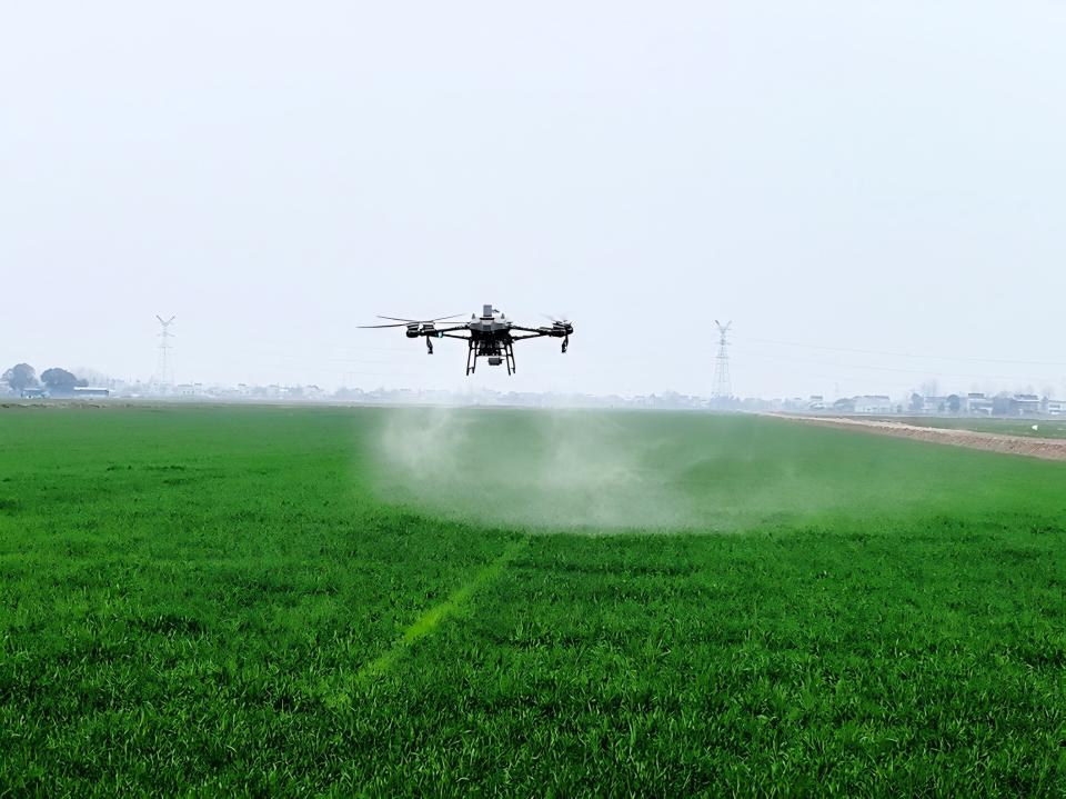 4月1日,華陽河農(nóng)場第六農(nóng)業(yè)分場麥田上空8臺植保無人機(jī)來回穿梭,正在開展小麥“一噴三防”作業(yè)?!把巯抡浅嗝共?、蚜蟲等病蟲害易發(fā)期,一次噴施藥劑,就可以實(shí)現(xiàn)防治病蟲害、防倒伏、防早衰、促增產(chǎn)的多重目標(biāo)?!鞭r(nóng)場農(nóng)業(yè)技術(shù)人員龍波介紹。