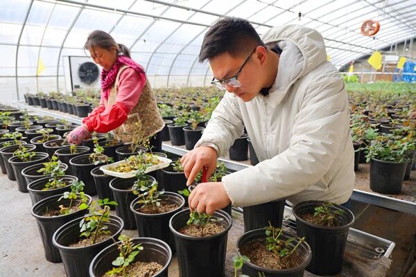 隨著氣溫逐漸回暖,在崗埠農(nóng)場高效農(nóng)業(yè)示范園內(nèi),一場關(guān)于春的“耕耘”正悄然展開。園區(qū)32號大棚內(nèi),工人們正緊鑼密鼓地進(jìn)行月季花、玫瑰花苗的春季管護(hù)工作,為即將到來的銷售旺季精心籌備。