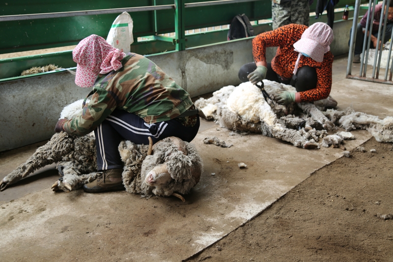 種羊場興安細(xì)毛羊剪毛中