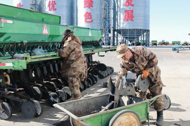 各連隊積極行動,創(chuàng)新舉措頻出。第一連(隊)聚焦技術(shù)革新,計劃完成4項設(shè)備技改項目,涵蓋了精量播種、覆土效率等多個方面,通過對農(nóng)機(jī)具的改良升級,進(jìn)一步提升春耕作業(yè)的效率與質(zhì)量,有效降低作業(yè)損耗,提高作業(yè)標(biāo)準(zhǔn)。第二連(隊)隊長張金浩介紹道:“連隊目前已儲備化肥590噸,剩余70噸即將到位,完成儲備進(jìn)度的90%。春耕機(jī)械設(shè)備檢修30余臺,基本完成檢修工作,確保農(nóng)機(jī)以最佳技術(shù)狀態(tài)投入春播生產(chǎn)。連隊以自治區(qū)堅強(qiáng)堡壘支部為依托,推動黨建與實際工作深度融合,發(fā)揮黨員先鋒模范帶頭作用,叫響‘不畏嚴(yán)寒,奮戰(zhàn)春耕’的口號,全力保障備耕任務(wù)高標(biāo)準(zhǔn)完成?!?