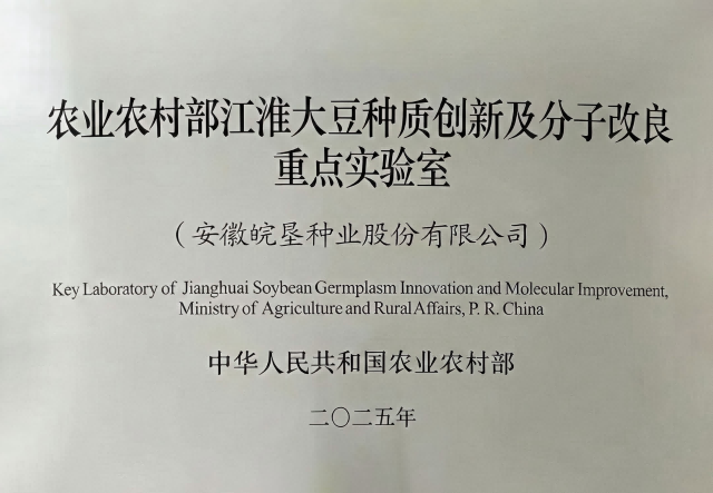 近日,安徽省省加快培育農(nóng)業(yè)科技領(lǐng)軍企業(yè)工作會(huì)議在合肥召開(kāi),現(xiàn)場(chǎng)為安徽省新增的8家農(nóng)業(yè)農(nóng)村部企業(yè)重點(diǎn)實(shí)驗(yàn)室授牌。其中,皖墾種業(yè)公司牽頭承建的“農(nóng)業(yè)農(nóng)村部江淮大豆種質(zhì)創(chuàng)新及分子改良重點(diǎn)實(shí)驗(yàn)室”名列其中,標(biāo)志著皖墾種業(yè)公司科技創(chuàng)新工作取得新突破。