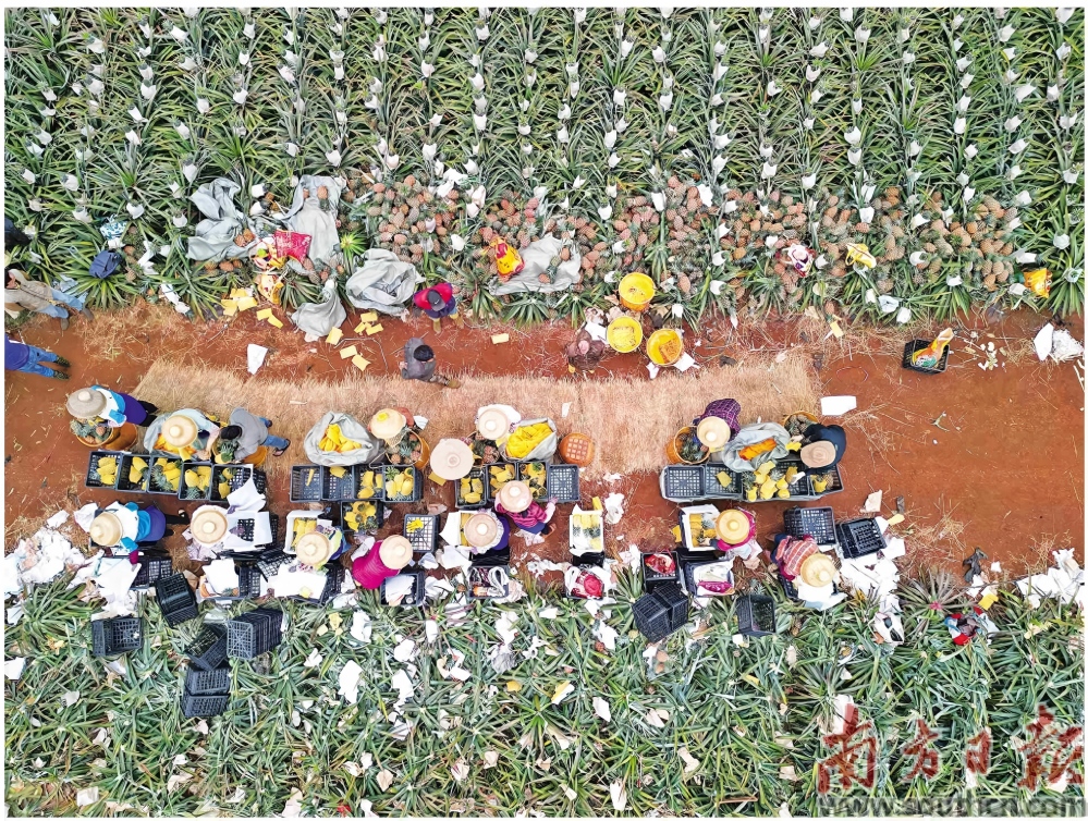 徐聞是中國著名的“菠蘿之鄉(xiāng)”,菠蘿年種植面積達35萬畝,全國每3個菠蘿中就有1個產(chǎn)自這里。當前,菠蘿核心產(chǎn)區(qū)曲界鎮(zhèn)等地已迎來采收高峰。