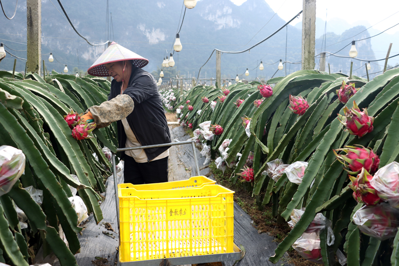 呂俊廣介紹,基地種植的品種是紅寶龍紅心火龍果,目前已經(jīng)接到了不少預定定單,累計有80萬斤,眼下正按照訂單計劃持續(xù)采收,按現(xiàn)在價格每斤4.5元計算,預計產(chǎn)值約350萬元。訂單主要來源于西安、北京等城市,合作社已經(jīng)跟郵政部門建立起完善的冷鏈物流網(wǎng)絡,確保新鮮火龍果能24個小時到達消費者手上。春節(jié)前訂單激增,基地每日臨時聘用40至50名臨時工,后續(xù)將根據(jù)采收量靈活調(diào)整用工。