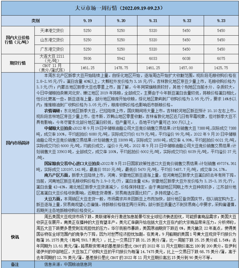 天然橡膠、大豆、玉米市場一周行情(2022.09.19-09.23)