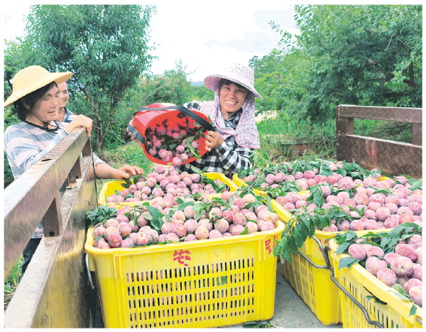 農(nóng)戶現(xiàn)場(chǎng)采收三華李。