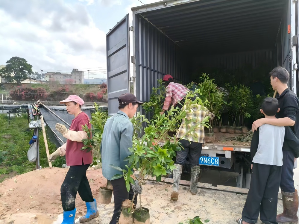 圖為正在將八角苗裝車(chē)。郭家鋒 攝