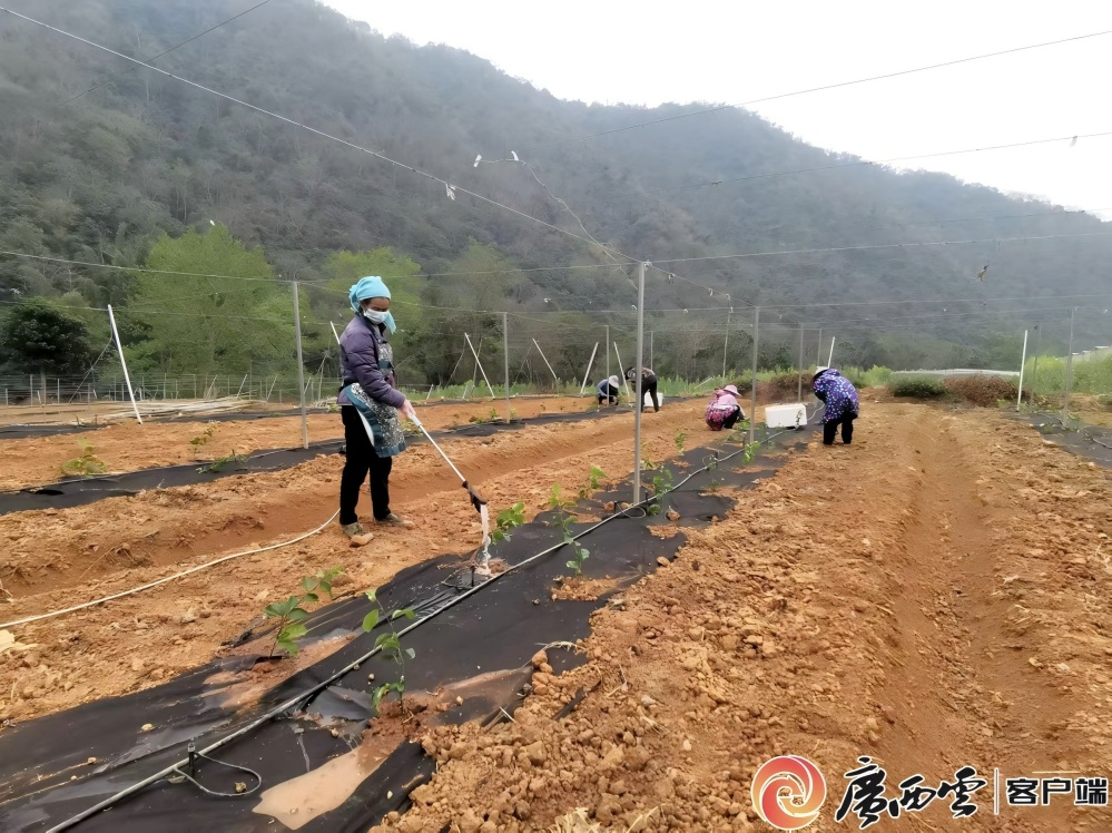 連日來,隨著氣溫回暖,西林縣仁鼎農(nóng)業(yè)“欽果9號”百香果示范基地進入春耕種植的關(guān)鍵期。在基地現(xiàn)場,經(jīng)過整理的土地整齊連片,數(shù)十名工人正分工協(xié)作,有序進行苗木搬運、挖坑定植、澆水施肥、搭建果架等工作,田間地頭呈現(xiàn)出一派忙碌景象。