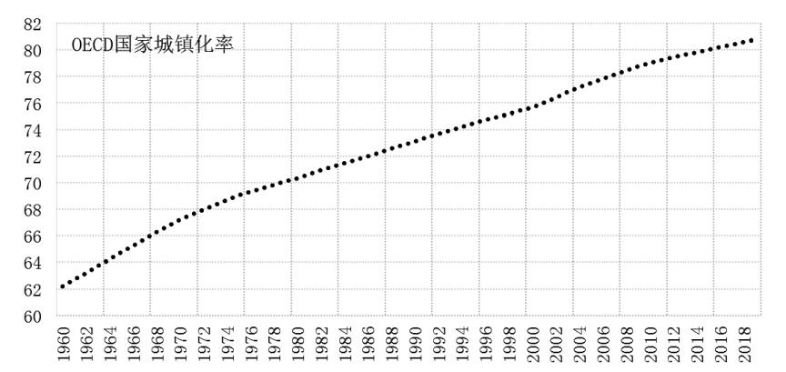 圖1 OECD國家城鎮(zhèn)化率(%)