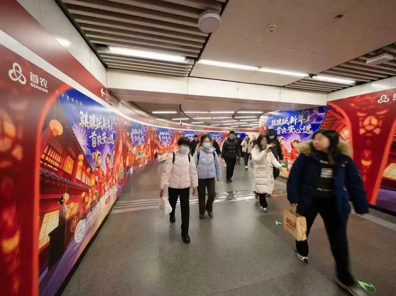 圍繞營銷活動商超門店、廟會市集點位、重點商圈,集團(tuán)在大望路和國家圖書館2個地鐵換乘站廳、全市250個公交車候車亭、1100余個住宅小區(qū)門禁、12000余個樓宇電梯以及京信城市大屏進(jìn)行廣告畫面集中投放;