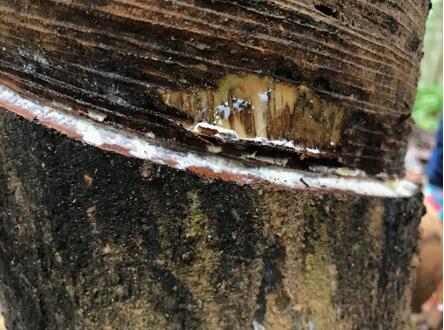 (一)規(guī)范割膠:嚴(yán)格執(zhí)行“一淺四不割”割膠制度,即科學(xué)安排割膠深度,不要一味追求膠乳產(chǎn)量而“深割”,樹身不干不割膠,低割線不割膠,早晨氣溫低于15℃不割膠,未經(jīng)治療處理的發(fā)病樹不割膠。結(jié)合割膠制度改革,采用乙烯利刺激割膠,降低割膠頻率。
