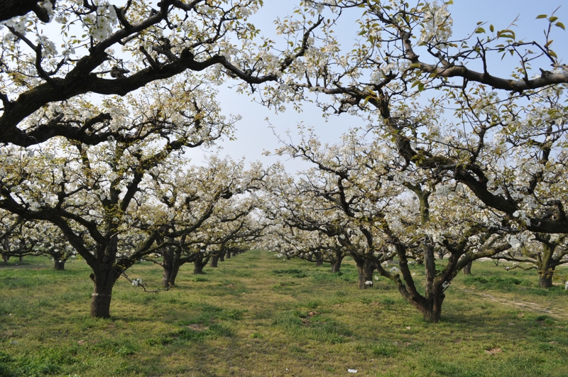 碭山,位于蘇、魯、豫、皖四省交界處,素有“世界梨都”之稱,每年陽春三月,春和景明時(shí)節(jié),碭山大地萬物復(fù)蘇,故黃漲綠,數(shù)十萬畝梨花吐蕊綻蕾,競相盛開。放眼環(huán)顧,雪堆云涌,銀波瓊浪,沃野千頃,一片花海,景象蔚為壯觀。到八月中秋,遍地金珠墜地,碭山又是果的世界,田間地頭又成了果山果海,到處人歡車鳴,芳香鋪地。置身其間,徜徉園圃,品嘗酥梨似蜜之甘甜,令人樂不思?xì)w,流連忘返。始建于1955年的安徽農(nóng)墾碭山果園場就坐落在這里。