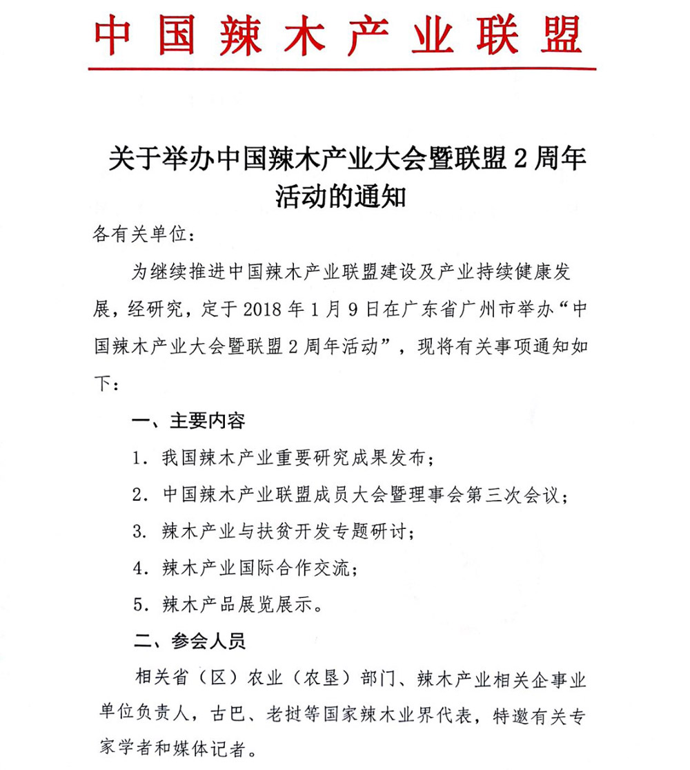 【辣木聯(lián)盟與大會】關于舉辦中國辣木產業(yè)大會暨聯(lián)盟2周年活動的通知
