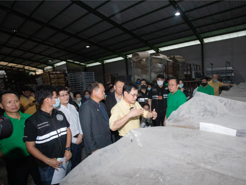 在工廠車間,朱林副總理參觀了公司生產(chǎn)線和公司成品倉(cāng)庫,對(duì)泰華公司濃縮乳膠的二維碼追溯系統(tǒng)表示贊賞,對(duì)公司的5L等產(chǎn)品通過諸多國(guó)際知名企業(yè)認(rèn)證點(diǎn)贊,并提出泰國(guó)應(yīng)加大本地的橡膠使用量,積極拓展海外的銷售渠道,提升泰國(guó)天然橡膠的知名度和美譽(yù)度。