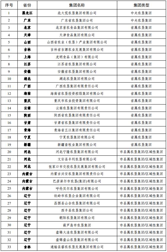 全國農(nóng)墾企業(yè)集團名單及分類