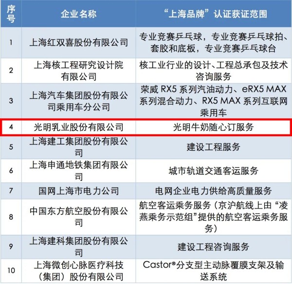“上海品牌”以世界先進標準為引領,以此推進“上海服務、上海制造、上海購物、上海文化”四大領域建設,并以此構建更高質(zhì)量、高要求的市場要求。2018年光明乳業(yè)首次通過認證,成為首家以食品通過認證的企業(yè),2022年光明牛奶隨心訂服務再創(chuàng)佳績,榮耀繼續(xù)。