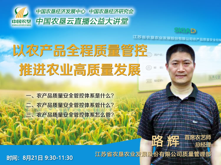 路輝,高級(jí)農(nóng)藝師,現(xiàn)為蘇墾農(nóng)發(fā)質(zhì)量管理部總經(jīng)理、江蘇省農(nóng)墾集團(tuán)首席農(nóng)藝師、中國農(nóng)墾第一屆標(biāo)準(zhǔn)化委員會(huì)委員,長(zhǎng)期從事農(nóng)墾農(nóng)產(chǎn)品質(zhì)量安全管理與風(fēng)險(xiǎn)控制研究等工作,牽頭并參與起草《江蘇農(nóng)墾農(nóng)產(chǎn)品質(zhì)量安全標(biāo)準(zhǔn)化控制手冊(cè)匯編》、《農(nóng)墾優(yōu)質(zhì)水稻生產(chǎn)技術(shù)操作規(guī)程》、《農(nóng)墾系統(tǒng)優(yōu)質(zhì)稻谷儲(chǔ)運(yùn)技術(shù)規(guī)范》等多項(xiàng)標(biāo)準(zhǔn)化技術(shù)規(guī)程;主持蘇墾農(nóng)發(fā)農(nóng)產(chǎn)品質(zhì)控體系信息化平臺(tái)項(xiàng)目建設(shè);獲中國商業(yè)聯(lián)合會(huì)科學(xué)技術(shù)獎(jiǎng)一等獎(jiǎng)一項(xiàng);編寫專業(yè)技術(shù)標(biāo)準(zhǔn)2項(xiàng),獲得多項(xiàng)著作權(quán),發(fā)表論文專著30余篇。