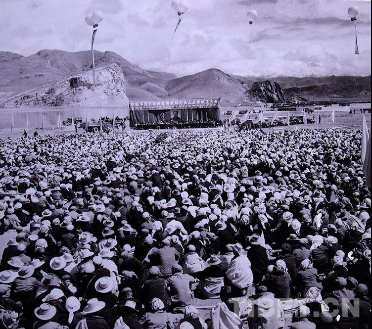 圖為林周農(nóng)場(chǎng)虎頭山水庫(kù)竣工大會(huì) 翻拍:王媛媛