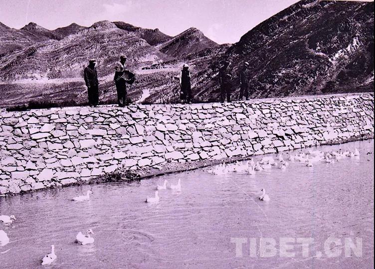 圖為林周農(nóng)場(chǎng)從北京引進(jìn)的鴨子在虎頭山水庫(kù)里暢游 翻拍:王媛媛
