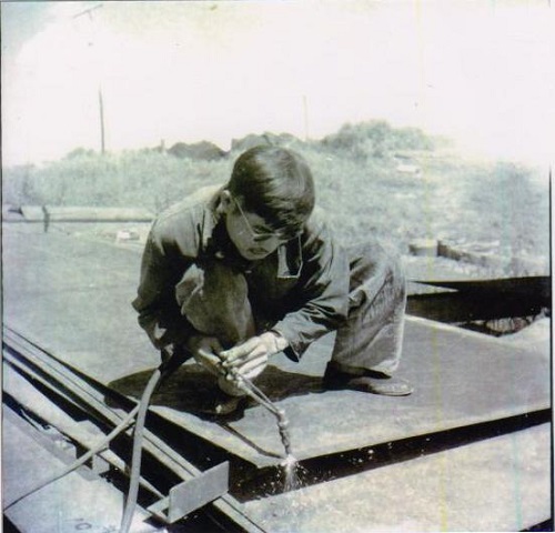 元旦過后,在沒有任何造船專業(yè)機械設(shè)備的情況下,大家用雙肩把第一塊鋼板抬上了船臺,接著兩塊、三塊、五塊、十塊,每塊鋼板都是1.4米×6米……