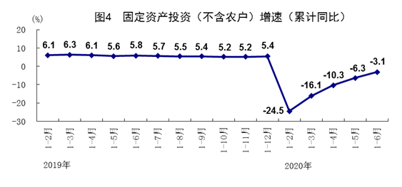 上半年,全國(guó)固定資產(chǎn)投資(不含農(nóng)戶)281603億元,同比下降3.1%,降幅比1-5月份收窄3.2個(gè)百分點(diǎn),比一季度收窄13.0個(gè)百分點(diǎn)。分領(lǐng)域看,基礎(chǔ)設(shè)施投資下降2.7%,制造業(yè)投資下降11.7%,降幅比一季度分別收窄17.0、13.5個(gè)百分點(diǎn);房地產(chǎn)開(kāi)發(fā)投資增長(zhǎng)1.9%,一季度為下降7.7%。全國(guó)商品房銷售面積69404萬(wàn)平方米,下降8.4%;商品房銷售額66895億元,下降5.4%,降幅比一季度分別收窄17.9、19.3個(gè)百分點(diǎn)。分產(chǎn)業(yè)看,第一產(chǎn)業(yè)投資增長(zhǎng)3.8%,一季度為下降13.8%;第二產(chǎn)業(yè)投資下降8.3%,第三產(chǎn)業(yè)投資下降1.0%,降幅比一季度分別收窄13.6、12.5個(gè)百分點(diǎn)。民間投資157867億元,下降7.3%,降幅比一季度收窄11.5個(gè)百分點(diǎn)。高技術(shù)產(chǎn)業(yè)投資增長(zhǎng)6.3%,一季度為下降12.1%;其中高技術(shù)制造業(yè)和高技術(shù)服務(wù)業(yè)投資分別增長(zhǎng)5.8%和7.2%。高技術(shù)制造業(yè)中,醫(yī)藥制造業(yè)、計(jì)算機(jī)及辦公設(shè)備制造業(yè)投資分別增長(zhǎng)13.6%、8.2%;高技術(shù)服務(wù)業(yè)中,電子商務(wù)服務(wù)業(yè)、科技成果轉(zhuǎn)化服務(wù)業(yè)投資分別增長(zhǎng)32.0%、21.8%。社會(huì)領(lǐng)域投資增長(zhǎng)5.3%,一季度為下降8.8%;其中衛(wèi)生、教育投資分別增長(zhǎng)15.2%、10.8%,一季度為分別下降0.9%、4.0%。從環(huán)比看,6月份固定資產(chǎn)投資(不含農(nóng)戶)比上月增長(zhǎng)5.91%。